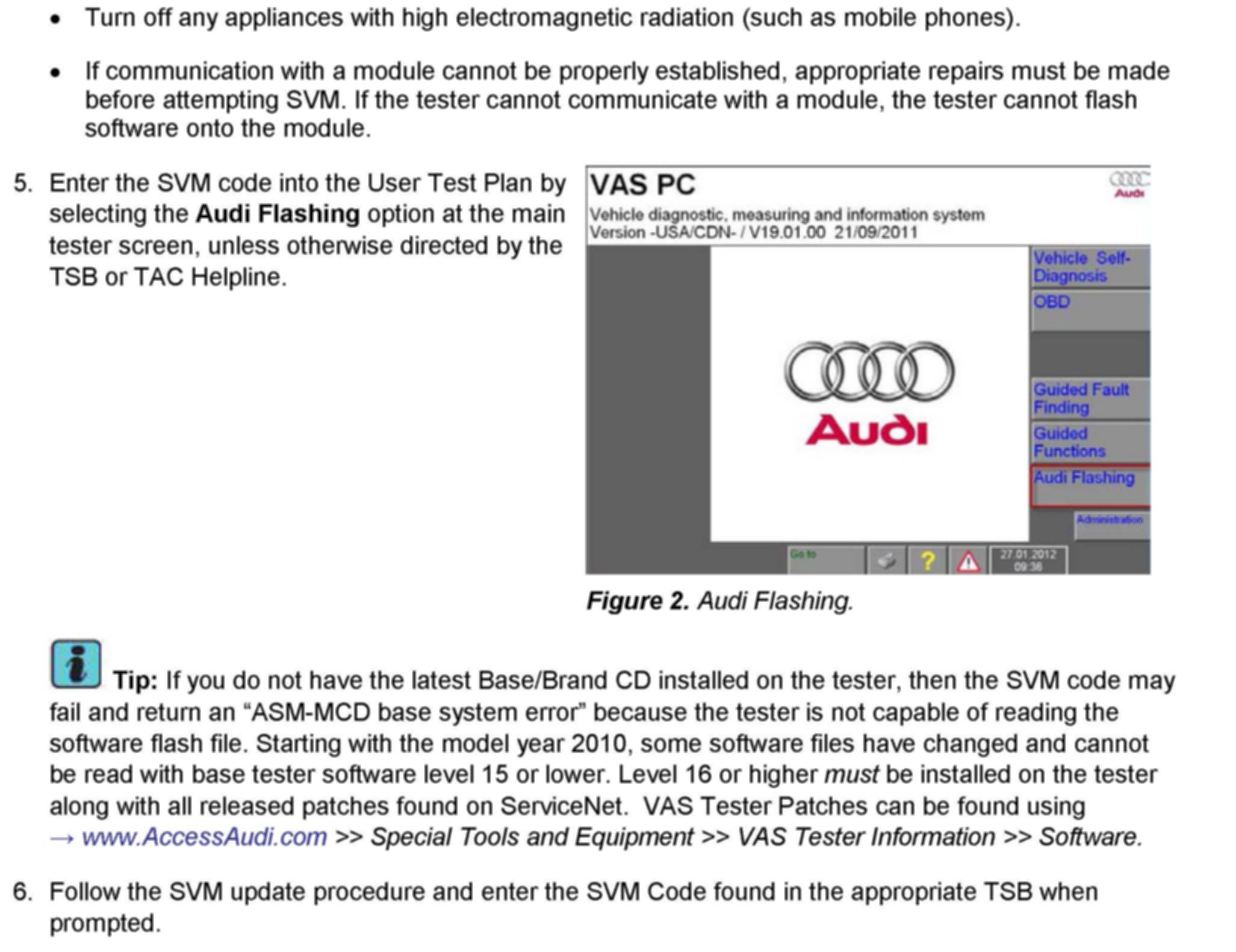1. Follow all instructions in the attached TSB 2011732 00 Software Version Management (SVM), operating instructions.