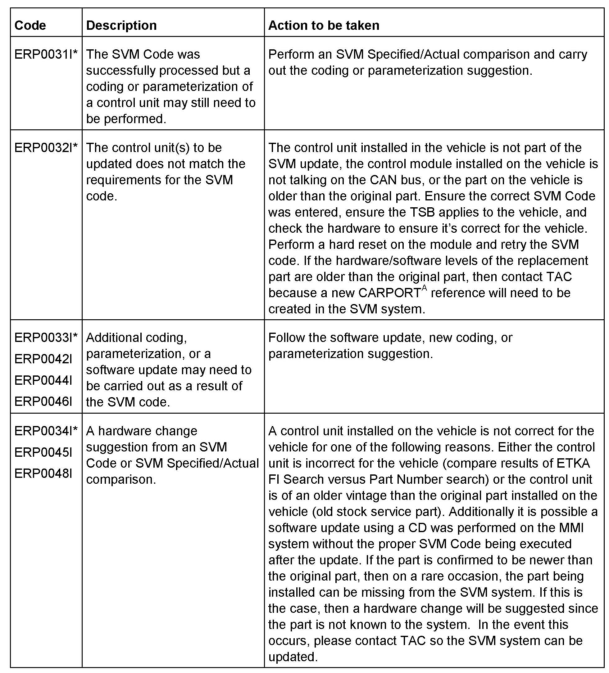 2. Update the J623 (ECM) using the SVM action code as listed in the table above if necessary.
