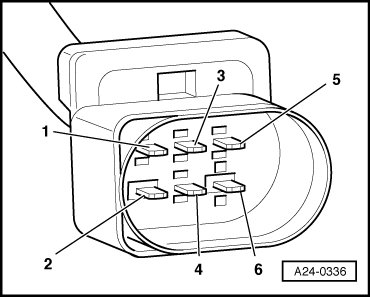 - Using a Multimeter, check the Throttle Valve Control Module (J338) electrical connector terminals 2 to 6 for voltage.