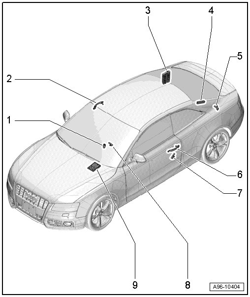 The comfort system central control module , the electronic steering column lock control module, and the central locking and antitheft alarm system antenna are present as basic equipment and with the "Advanced Key" option. The remaining components are available only with the "Advanced Key" option.