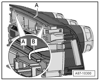 • In model year 2007, Climatronic control modules with an additional strip - A - (for reinforcement) on the back side will be installed as a running change. Place (3438) - B - at left and right on this strip - A -.