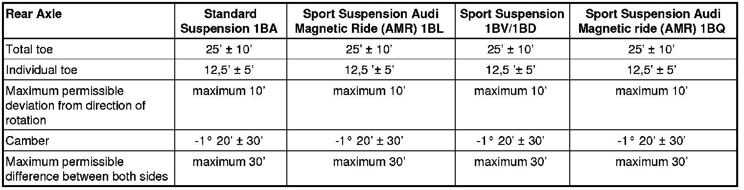 Vehicle Alignment Specified Values