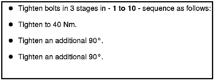 - Give 90° (1/4 turn) additional turn in sequence - 1 through 6 - using rigid wrench.