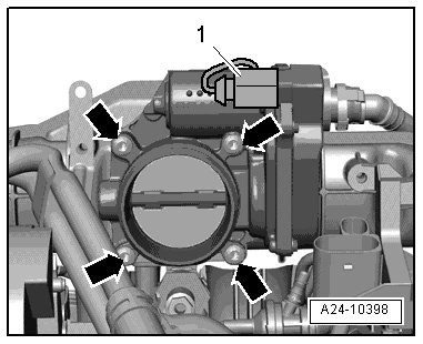 - Remove the four bolts - arrows - on the throttle valve control module and then remove the throttle valve control module.