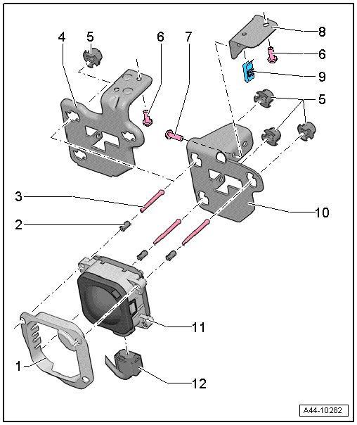 • Removing and installing, refer to => [ Distance Regulation Control Module Clip, From MY 12 ] Distance Regulation Control Module Clip, From MY 12.