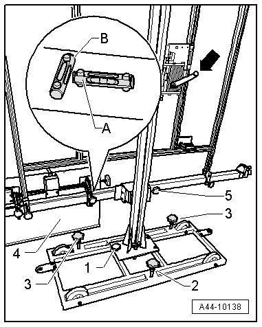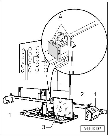 - Level the bubble levels - A - and - B - on the (VAS 6430) using the adjusting screws - 1 -, - 2 - and - 3 -.