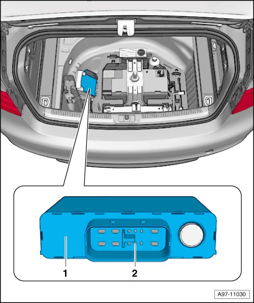 Control modules in interior and rear part of vehicle