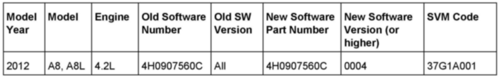 3. A8 vehicles with Applicable Criteria ID 02 will automatically update with this SVM Code.