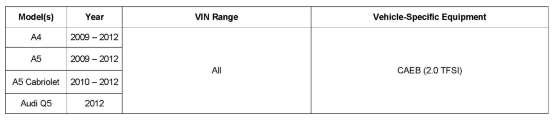 01 P0234 and/or MIL on - A4, A5, A5 Cabriolet, and Audi Q5 2.0 TFSI