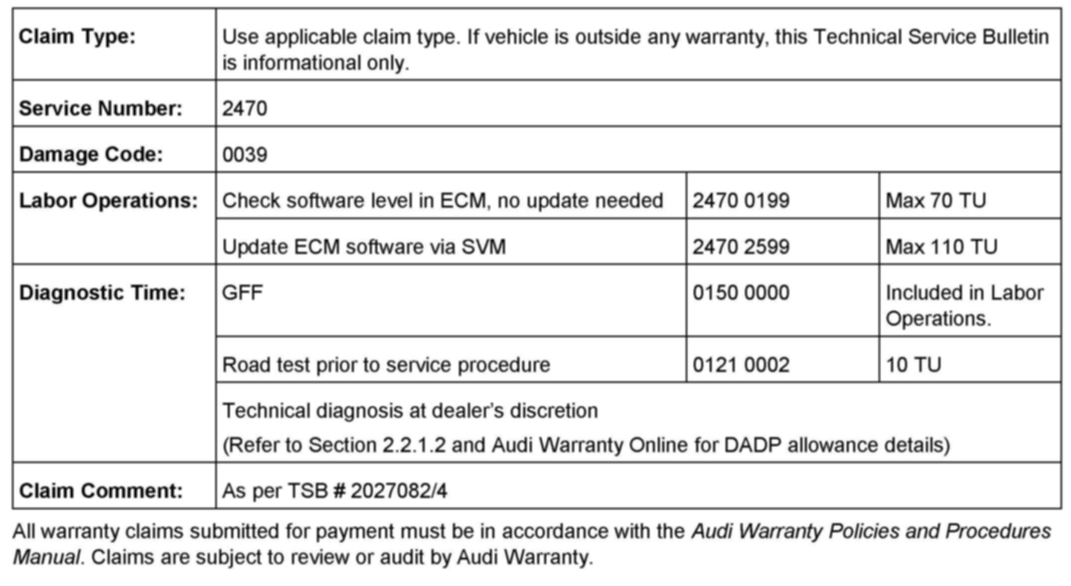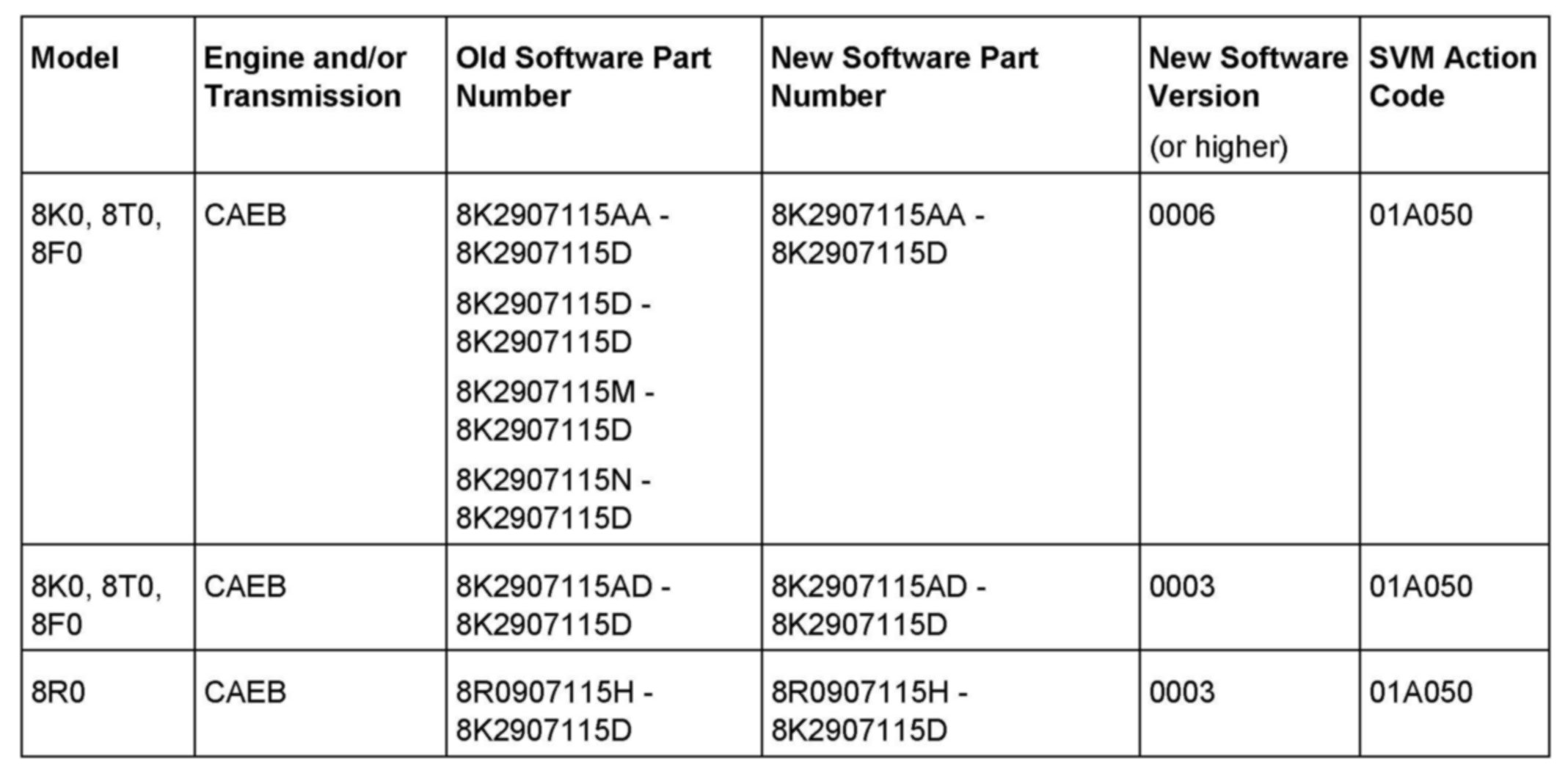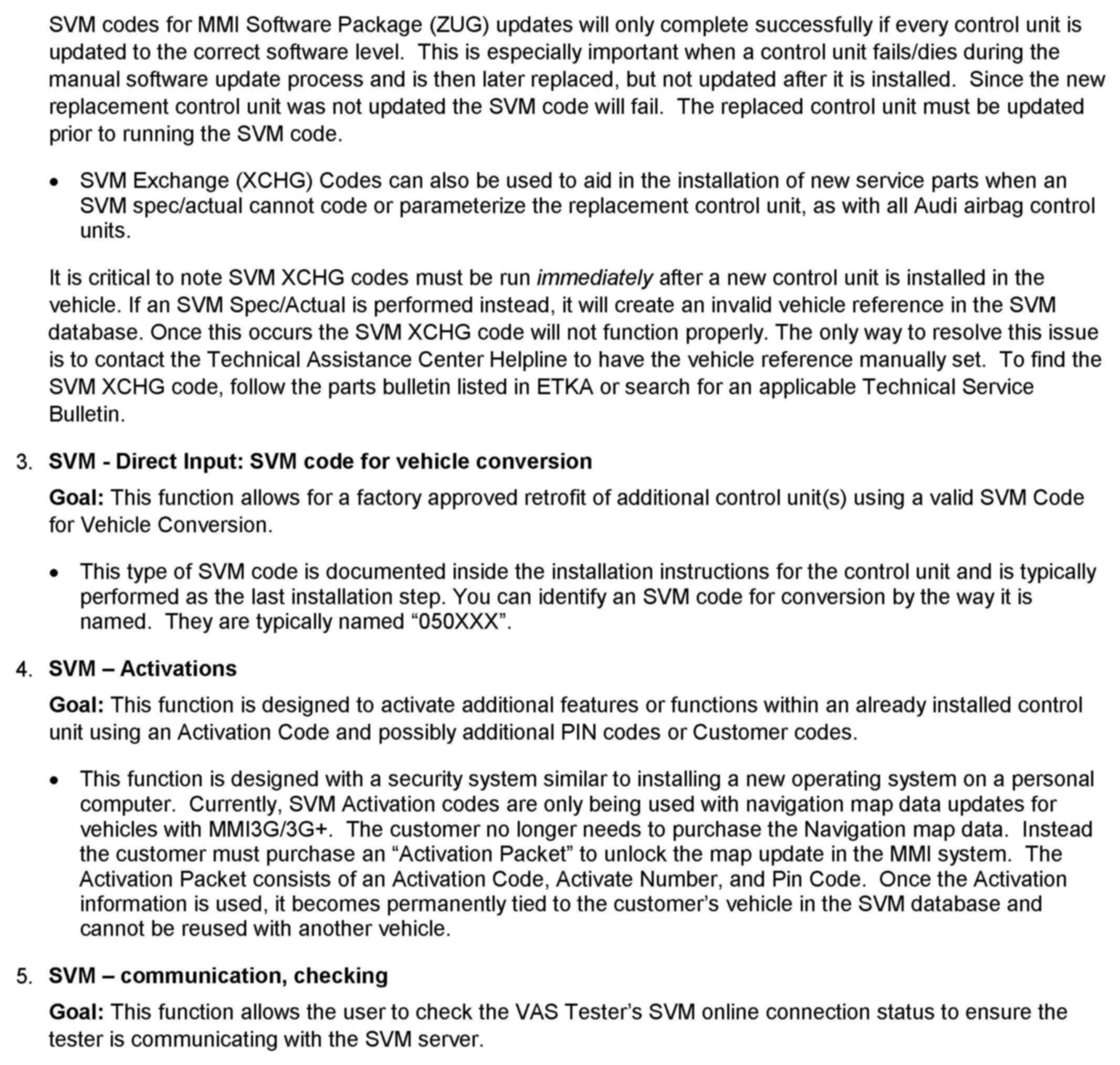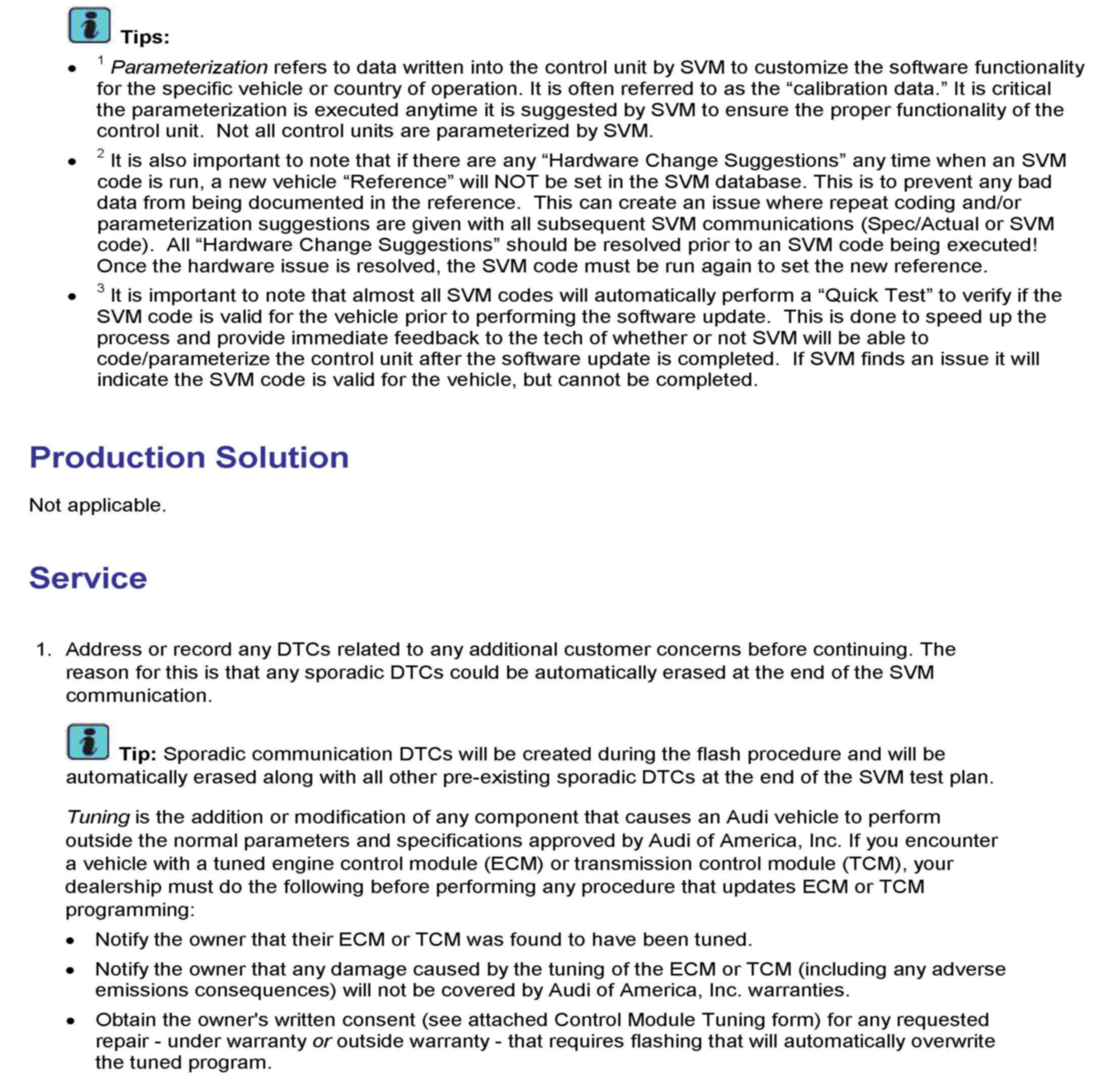 2. Update the ECM (J623) using the SVM action code as listed in the table above if necessary.