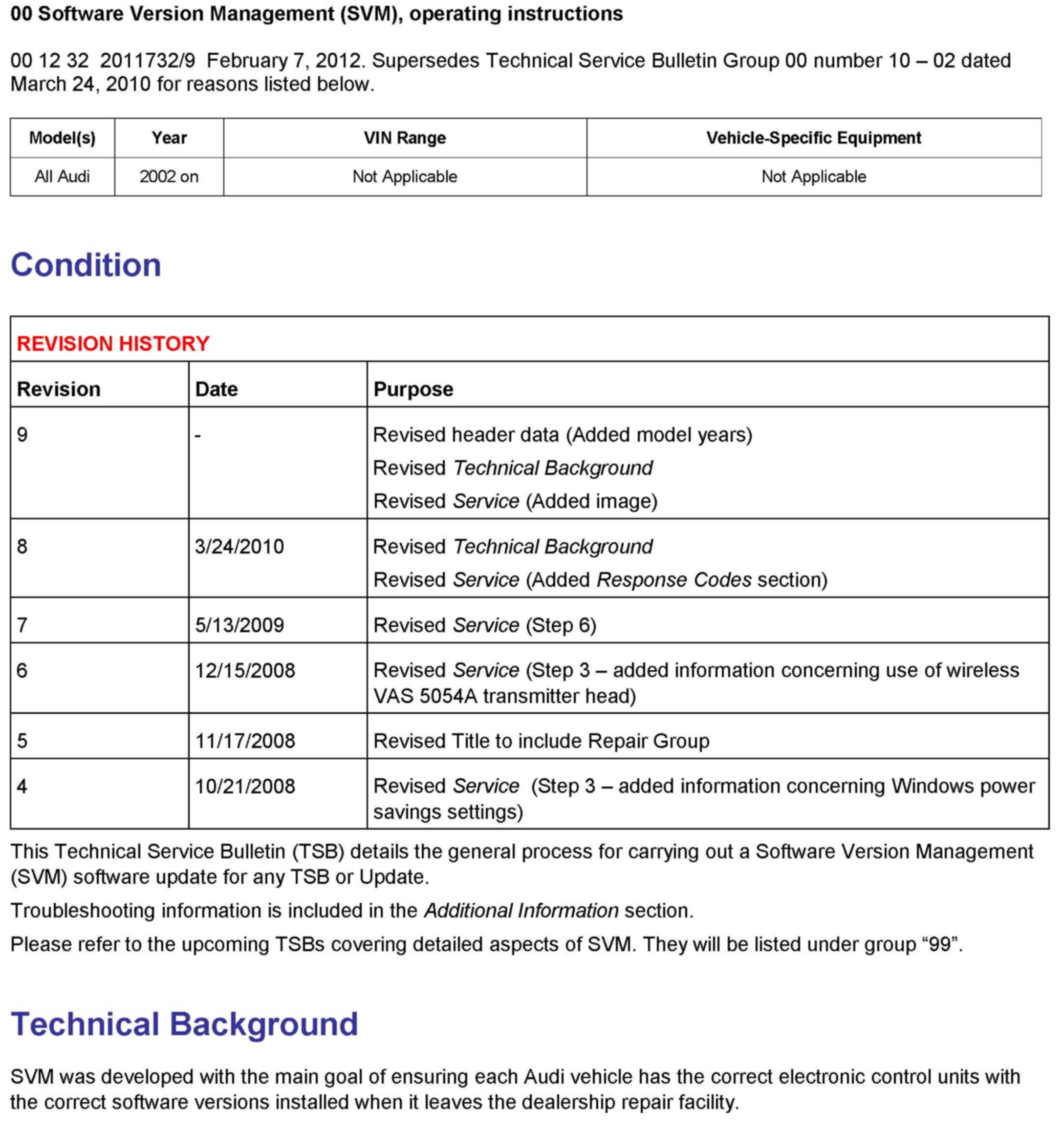 ^ TSB 2011732, 00 Software Version Management (SVM), operating instructions