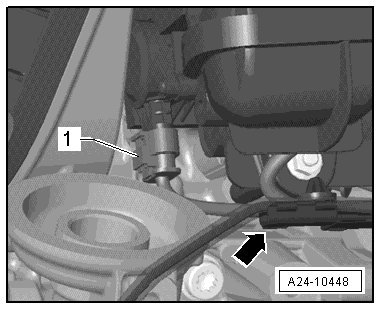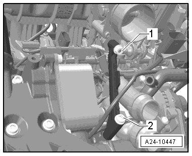 - Loosen the mounting nut - 1 - slightly and remove the bolt - 2 - completely.