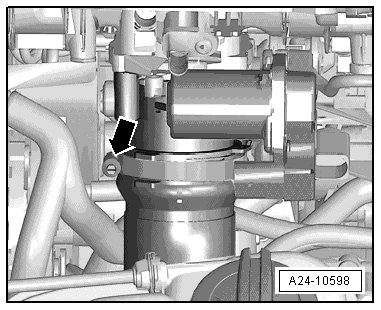 - Open the air guide hose clamp - arrow - and remove the hose from the throttle valve control module.