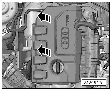 - Remove the engine cover - arrows -.