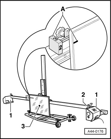 - Install the front wheel measuring sensors - 1 - on the (VAS 6190).