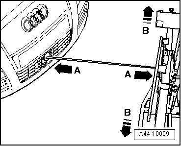 - Now align by sliding it sideways - arrows B - (VAS 6430) so that the laser beam is horizontally centered on the senor lens.