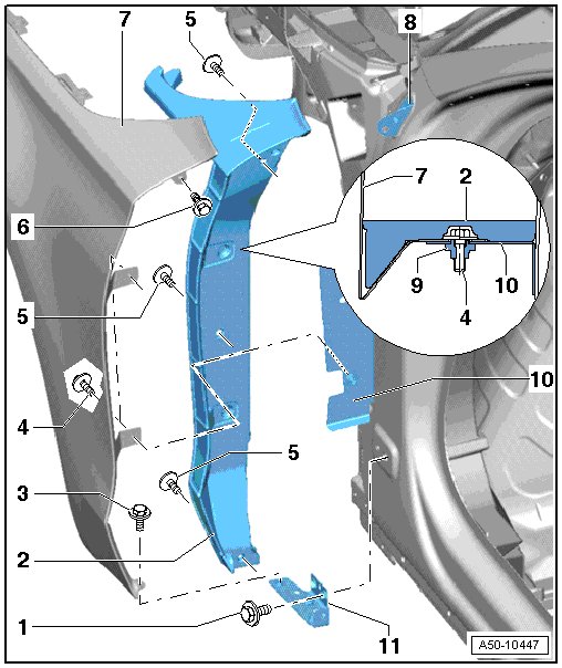 - The bumper is removed and press the wheel housing liner to the side in the area of the brace.