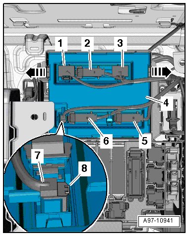 - Disconnect the connectors - 2, 5 and 6 -.