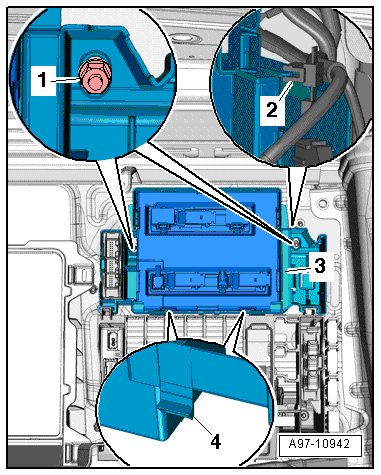 • Tightening specification. Refer to => [ Relay/Fuse Carrier and Control Modules in Luggage Compartment Overview ] Relay/Fuse Carrier and Control Modules in Luggage Compartment Overview.
