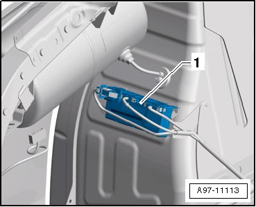 In left luggage compartment, behind side panel trim -1- .