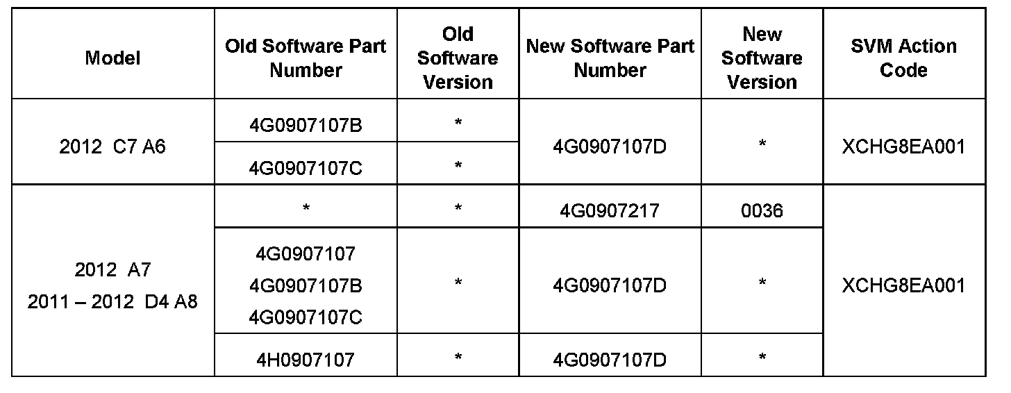 If the P/N 4G0907217 is installed in the vehicle then an additional parameterization will be performed.