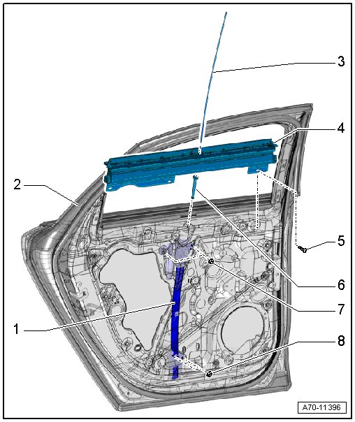 • Removing and Installing, refer to => [ Rear Window Shade Motor V332/V333 ] Rear Window Shade Motor V332/V333