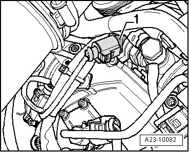 - Disconnect the connector on the fuel pressure regulator valve (N276) - 1 - on the cylinder bank 1 (right) rail.