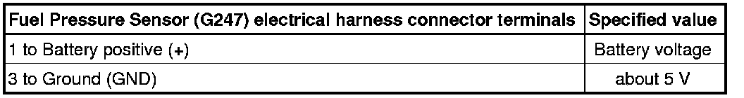 - Using a multimeter, check the Fuel Pressure Sensor (G247) electrical harness connector terminals for voltage.