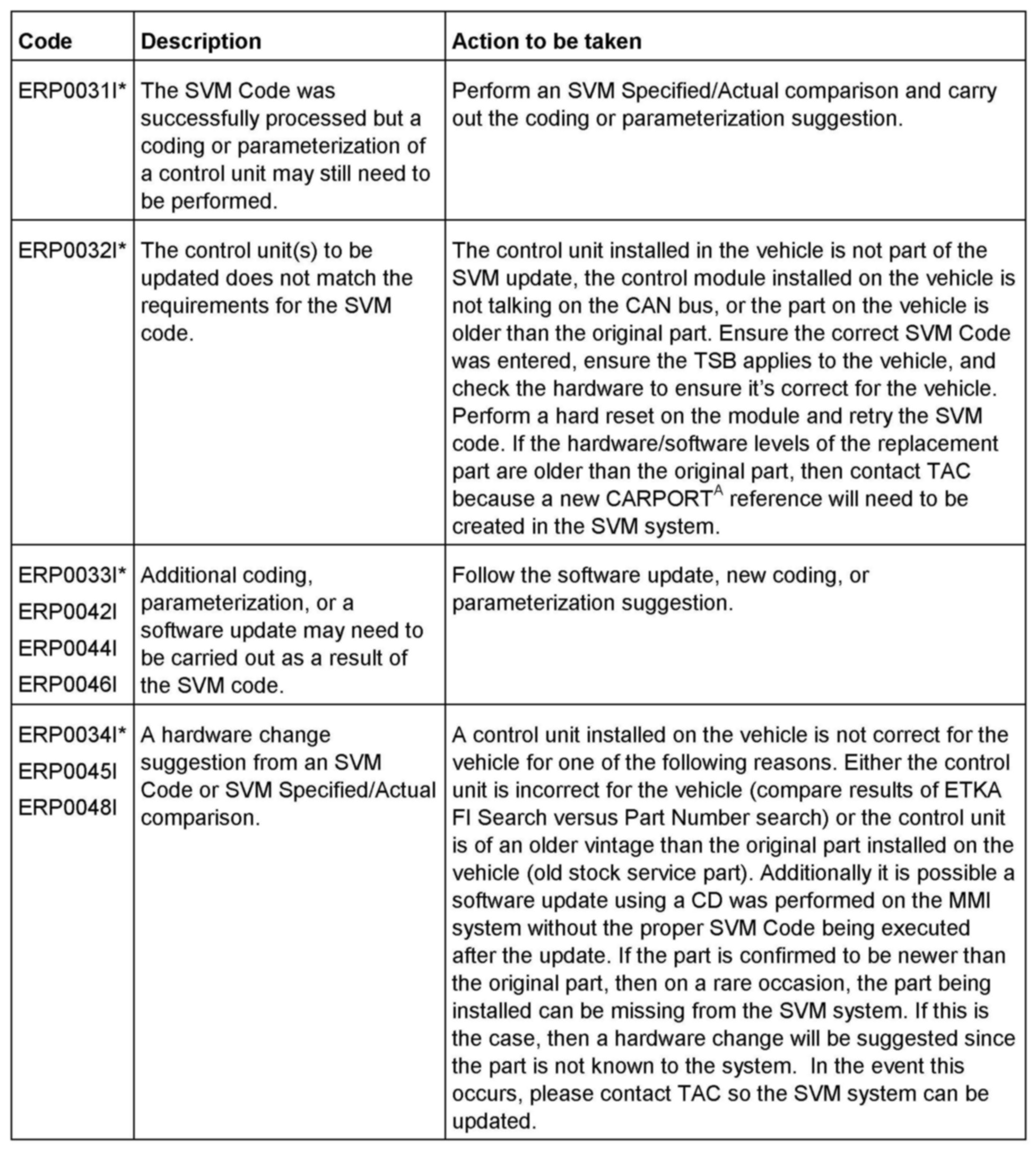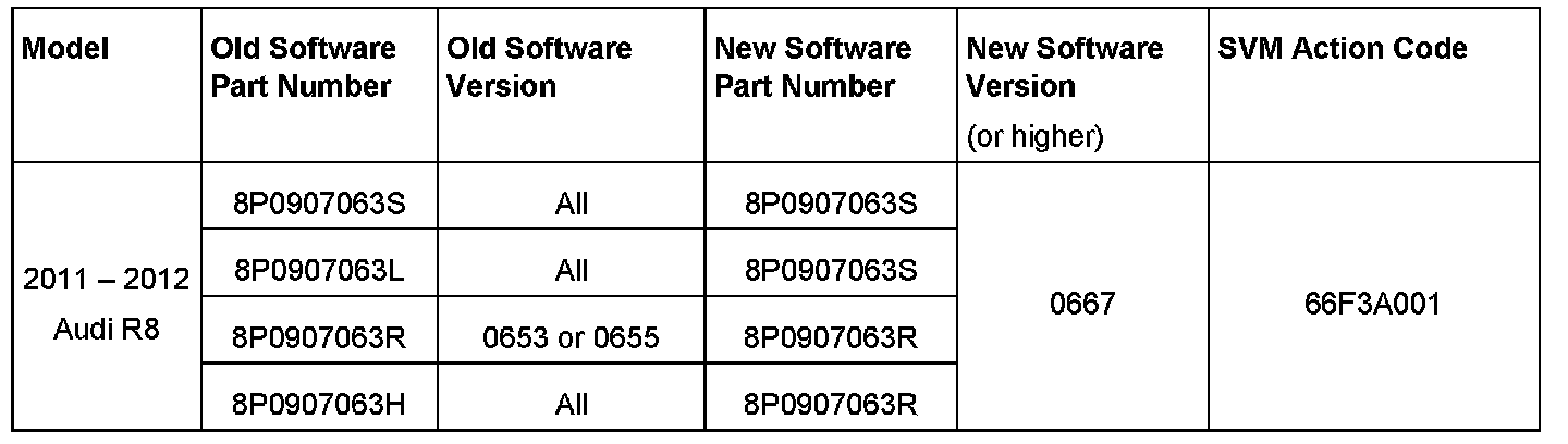 2. Update the Vehicle Electrical System Control Module (J519) using the SVM action code as listed in the table above if necessary.