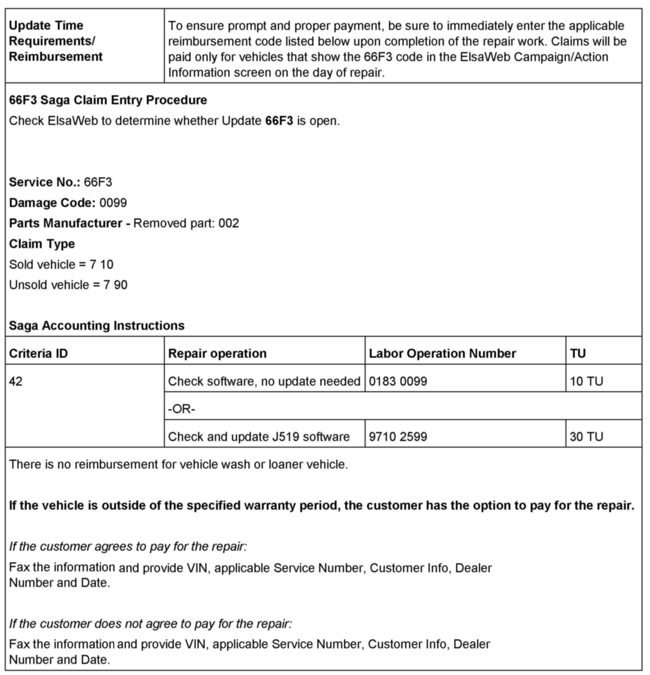^ Procedure is valid only for vehicles that show the 66F3 code in the ElsaWeb Campaign/Action Information screen on the day of repair.