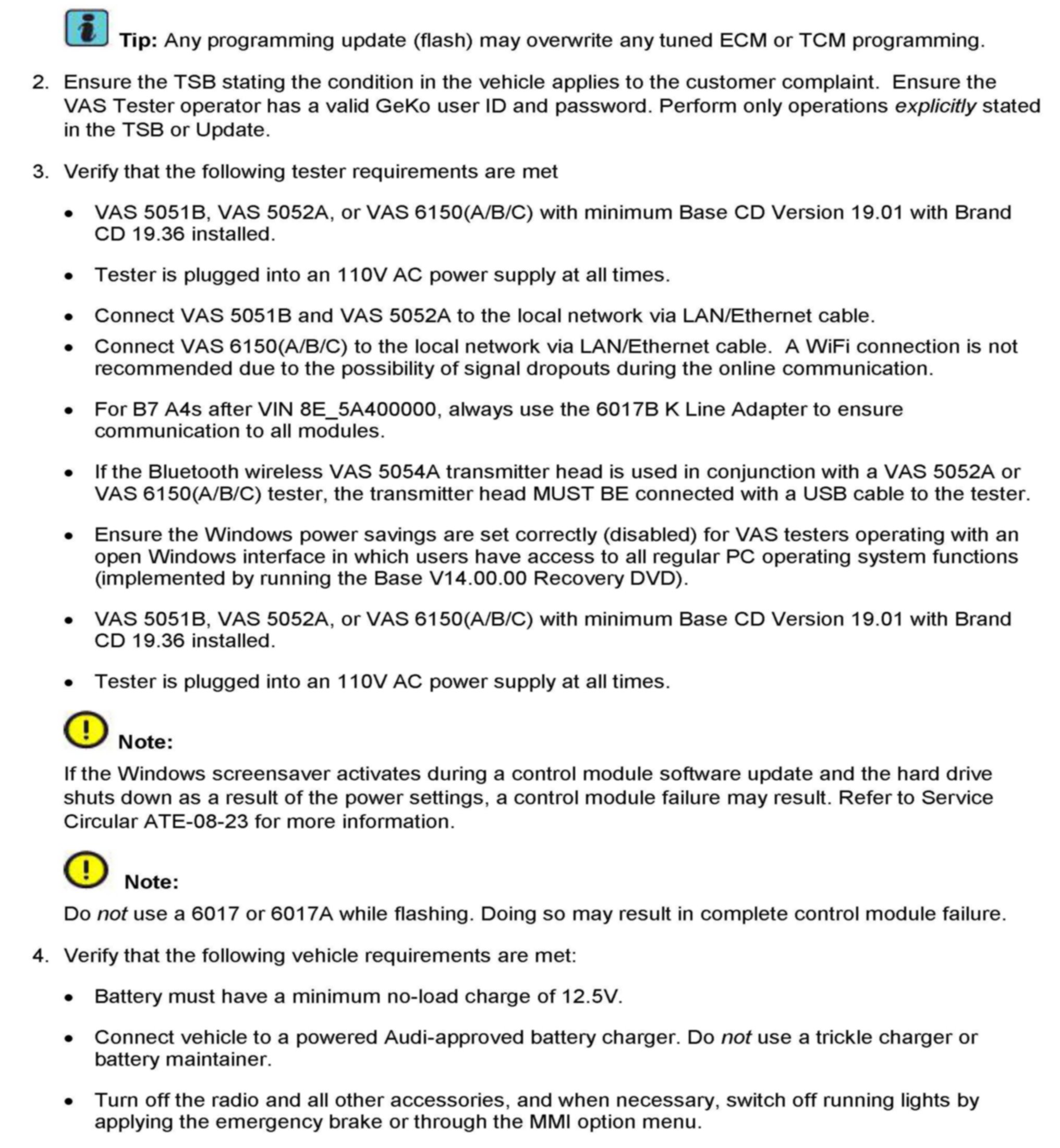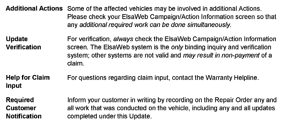 ^ Procedure must be performed within the allotted time frame stated in this Technical Service Bulletin.