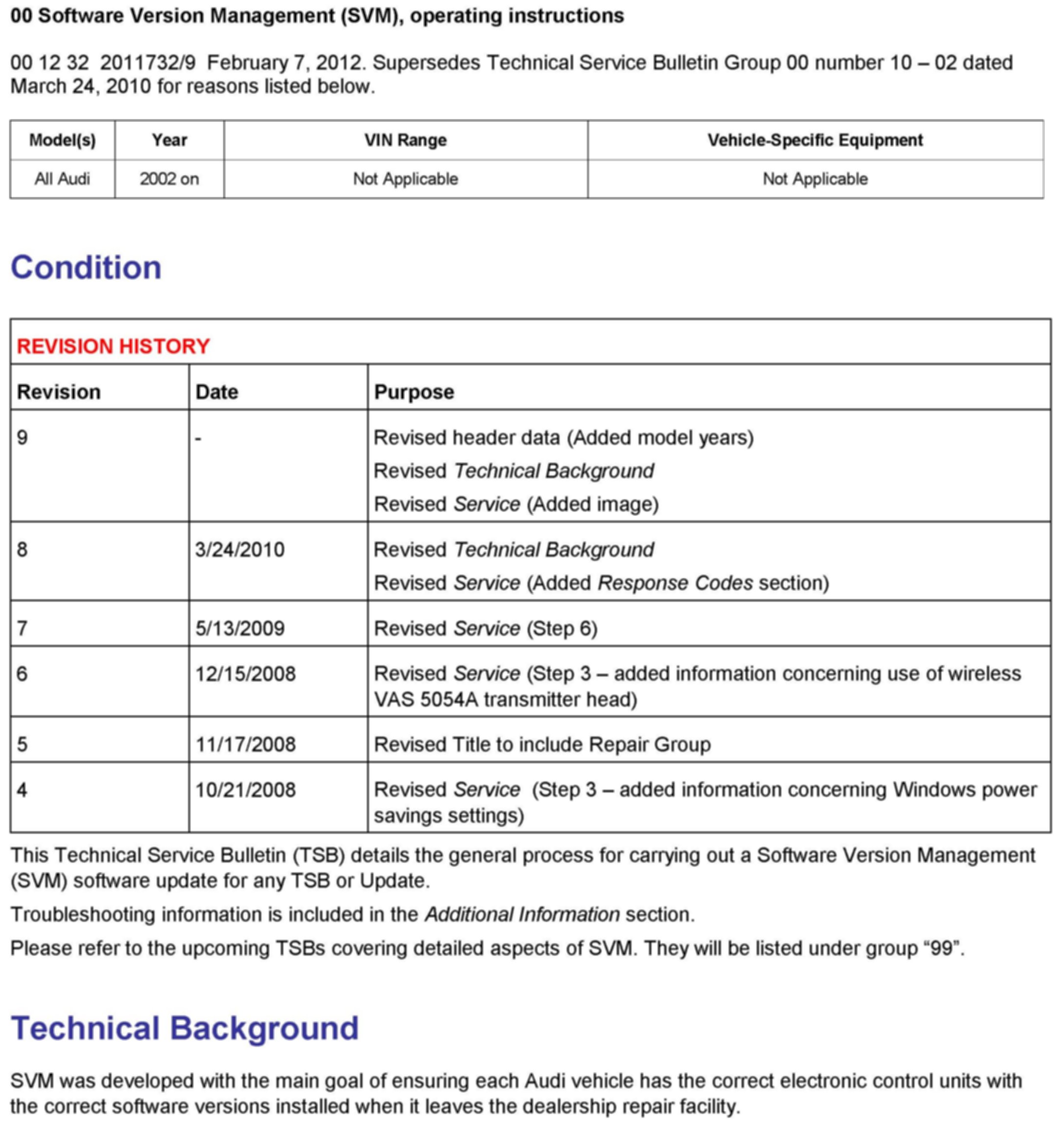 ^ TSB 2011732 00 Software Version Management (SVM), operating instructions.