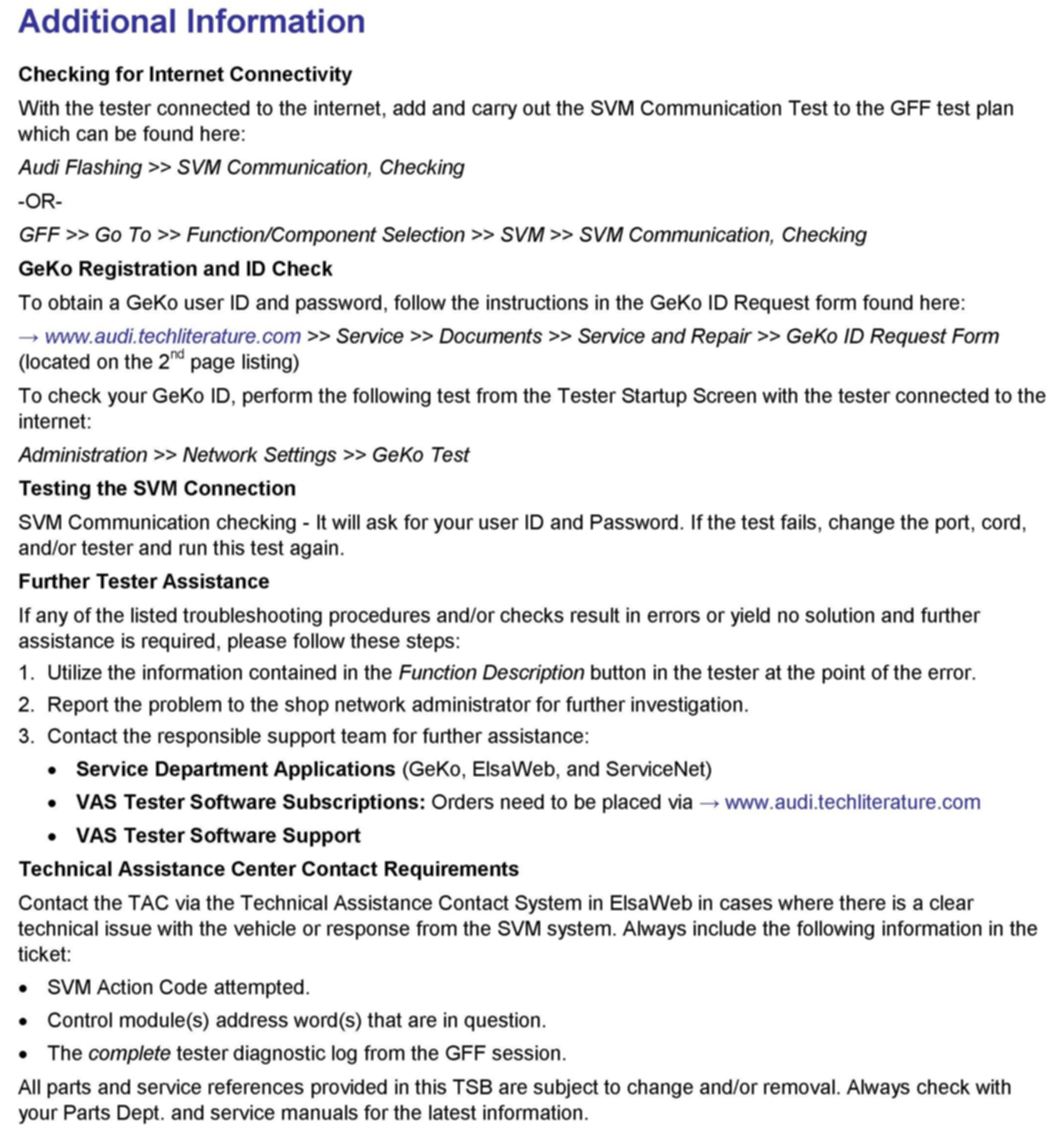 1. Follow all instructions in the attached TSB 2011732 00 Software Version Management (SVM), operating instructions.