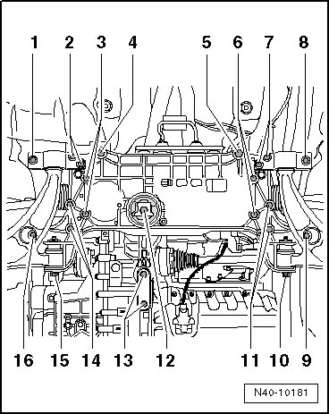 - Remove the bolts - 13 - and then remove the pendulum support from the transmission.