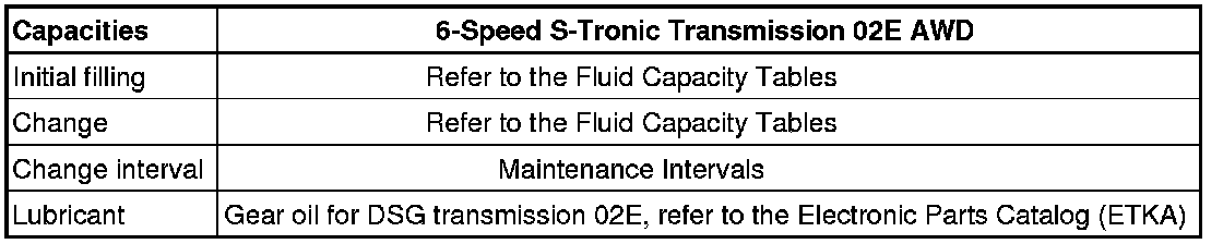 • Only the gear oil available as a replacement part may be used for the 02E S-Tronic transmission. Other oils can cause malfunctions or transmission failure.