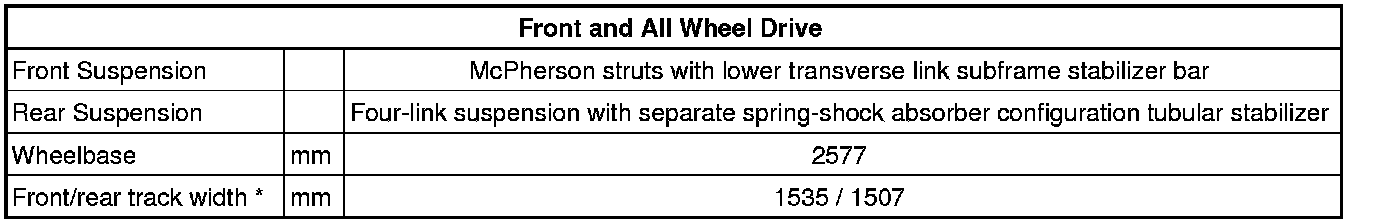 Front/rear track width, applies only to 205/55/R16