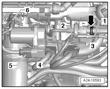 2 to 6 - Ignition coils (N70, N127, N291, N292)