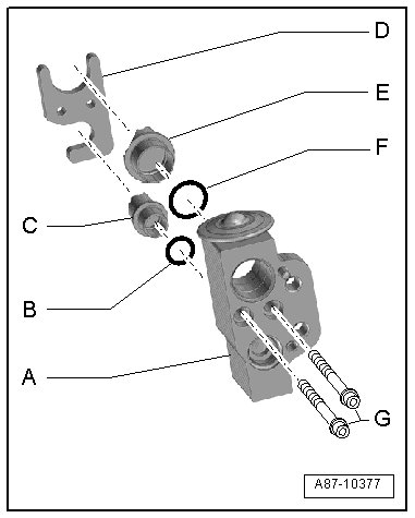 • Expansion valve is available in different versions (same housing but a different control characteristic), therefore ensure the exact allocation. Refer to Electronic Parts Catalog (ETKA).