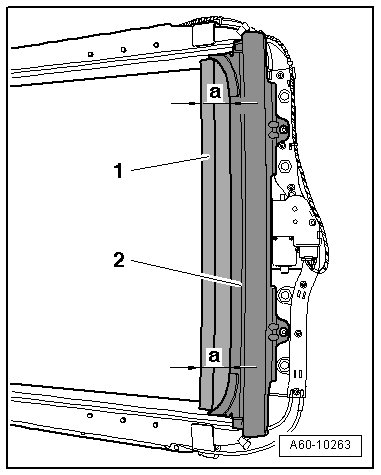 - Prior to installing the motor, make sure the sun shade is parallel by measuring - dimension a - between the shade arch - 1 - and the shade cartridge - 2 -.