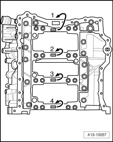 Tighten the bolts for the guide frame sealing surfaces on the cylinder block to 23 Nm in the following sequence: - 17 to 31 -.