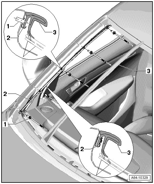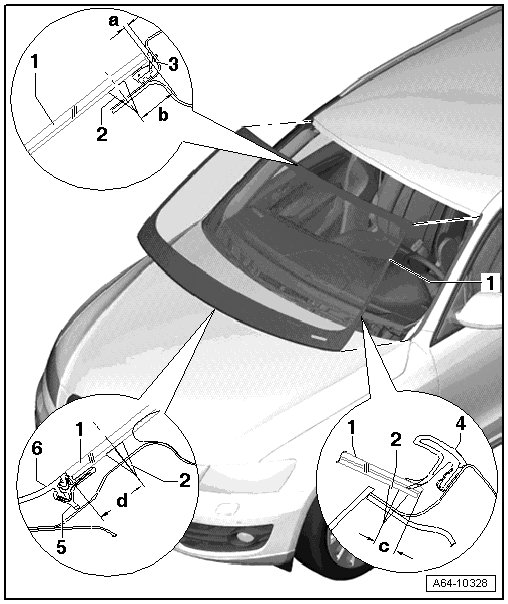 - With a new windshield - 1 -, protective tubing - 2 - must be removed from molding - 3 - before installing plenum chamber cover - 4 -.