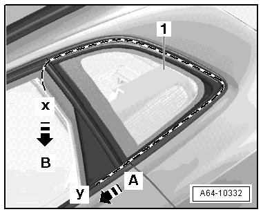 - Pull cutting wire forward in direction of arrow - A - using sawing motions and cut through lower adhesive sealing material at side panel and at roof frame.