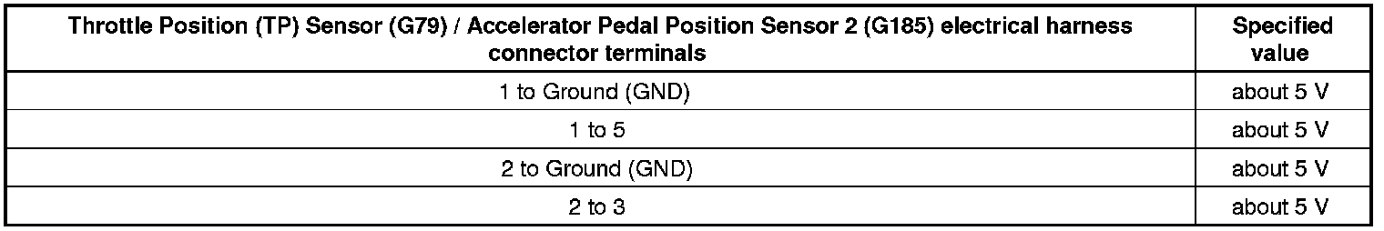 - Replace the Throttle Position (TP) Sensor (G79) / Accelerator Pedal Position Sensor 2 (G185). Refer to the appropriate service manual.