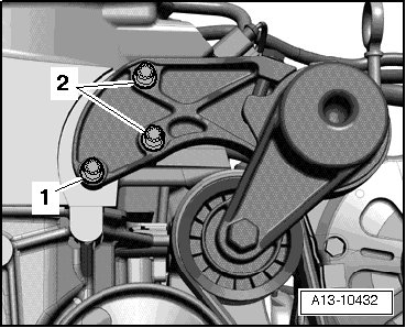 - To secure ribbed belt tensioner, install an M8x50 bolt in the threaded hole - A -.