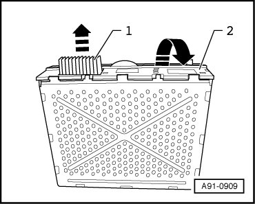 - Open cover - 2 - of radio and fold it down - arrow -.