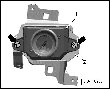 - Remove screws - arrows - and remove Access/Start Authorization Switch - item 1 - from retaining frame - 2 -.