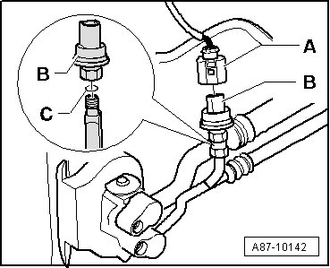 - Remove the high pressure sensor - B - (tightening specification: 5 Nm).