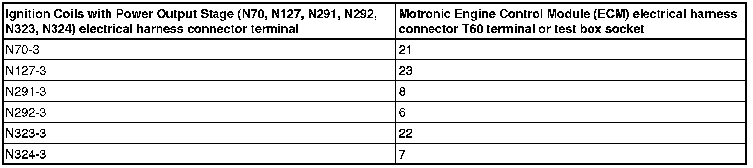 - Replace the faulty Ignition Coils with Power Output Stage (N70, N127, N291, N292, N323, N324). Refer to appropriate service manual.