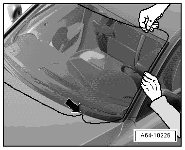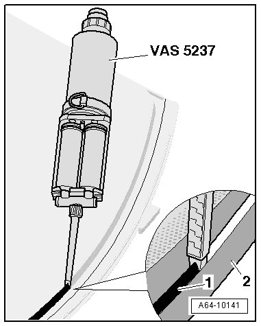 - When reusing the undamaged window, cut rest of adhesive material on window and flange with (V.A.G 1561 A) and (V.A.G 1561/8) so it is even, but do not remove completely.