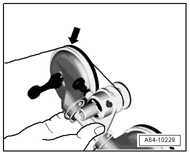 - Cover the awl outlet under the body flange with tape - 1 - to prevent damaging it.